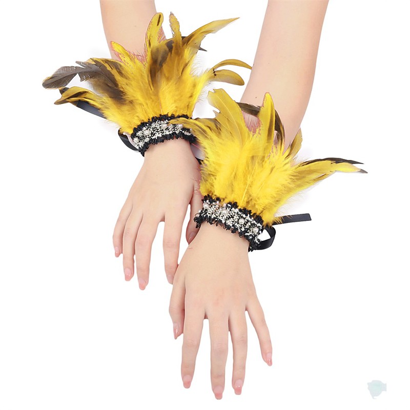 Accessori Samba Carnevale 2026 Rio Carnevale Polsini Piume Nere Donna con Nastro Ricamato Vintage Costume per Festival in Brasile