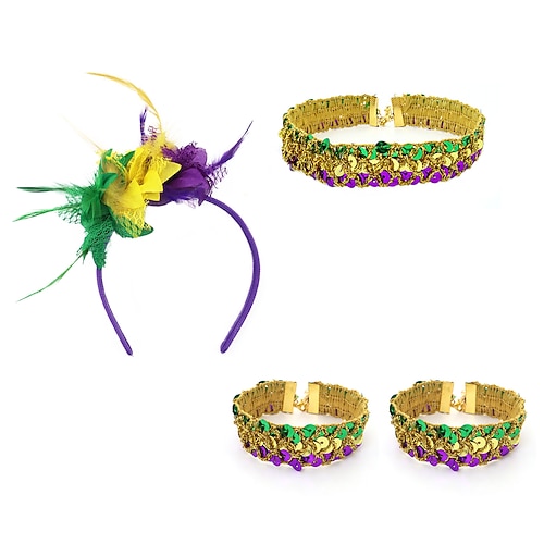 Accessori Samba Carnevale 2026 Rio Carnevale Set Accessori Costume Mardi Gras per Donna Fasci della Testa Piuma con Fiore Costume per Festival in Brasile