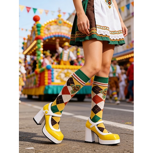 Damen Mardi Gras Lila Plattform-High Heels mit weißen Akzenten – Retro Karneval Stil perfekt für festliche Paraden und Veranstaltungen
