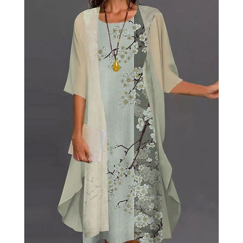 Women's Graphic Print V Neck Midi Dress Elegant Tropical Home Date Short Sleeve Summer