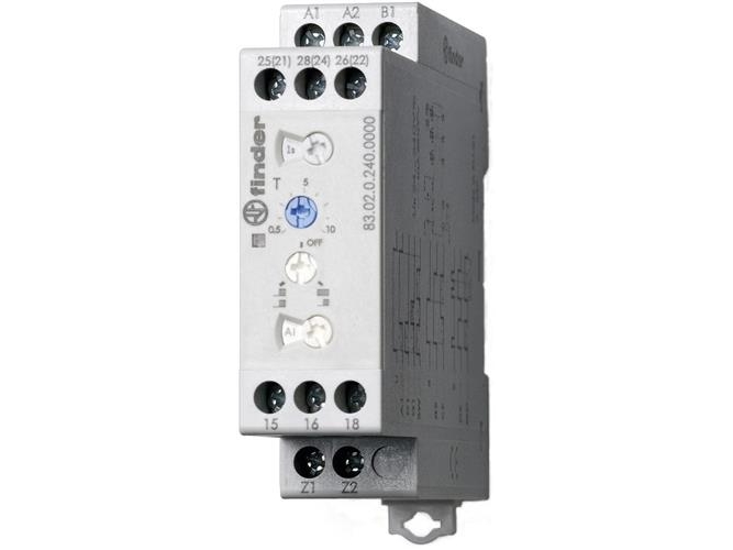 Monitoimiajastin 12A 2C/O, 22,5mm, monijännite. 24-240VAC/DC, 8 kytkentätoimintoa. 8 aika-aluetta. 0,05s-10 päivää.