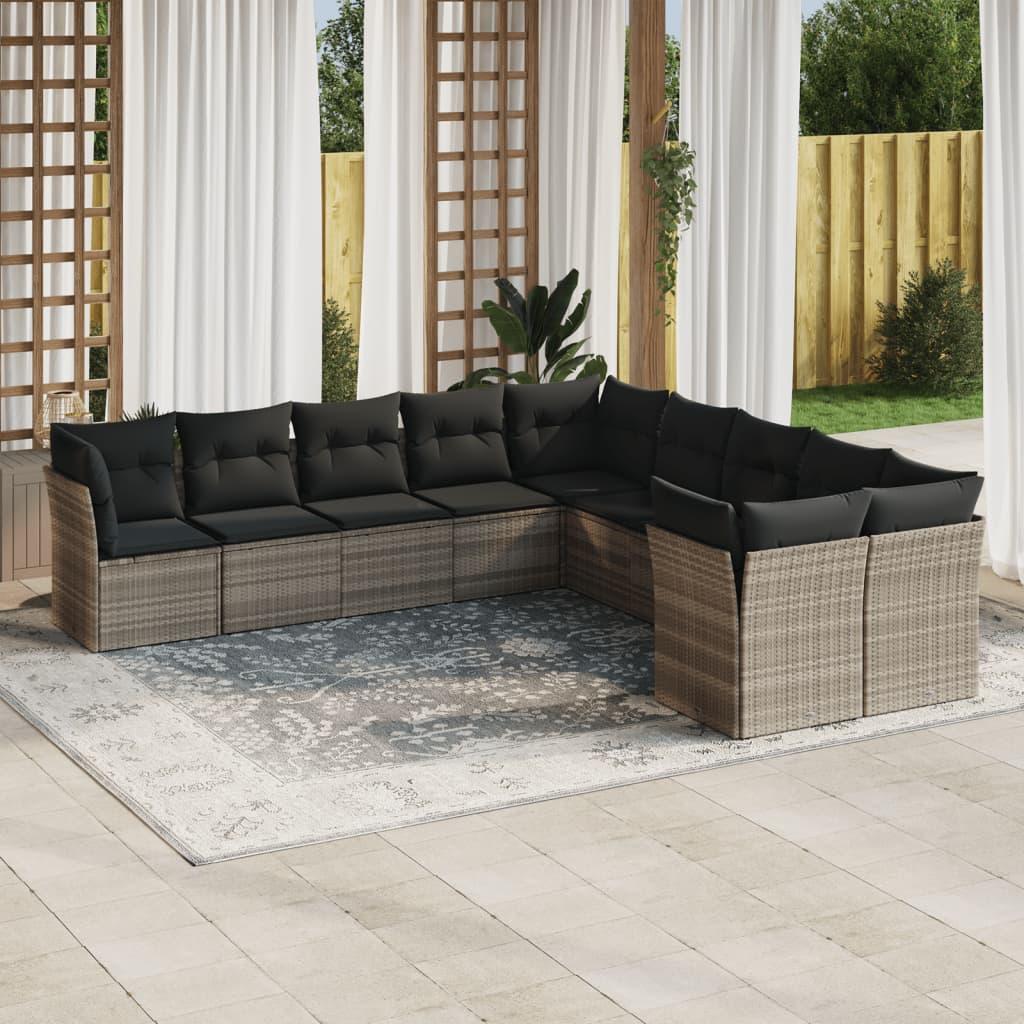 Sofasæt til haven 10 dele med hynder polyrattan grå