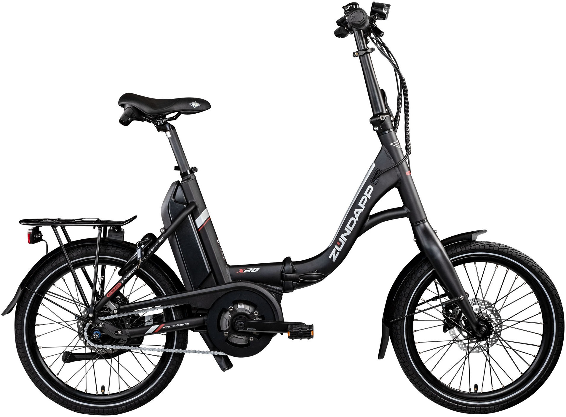 E-Bike ZÜNDAPP "X20" Gr. 45, schwarz (schwarz, rot, schwarz), Elektrofahrräder, 45cm, 20 Zoll (50,80cm), Pedelec, Elektrofahrrad für Damen u. Herren
