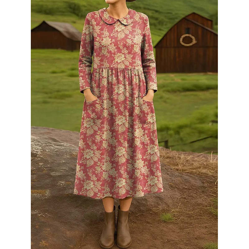 Women's Floral Print Lapel Maxi Dress Long Sleeve Spring Fall