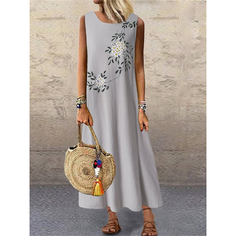Women's Midi Dress Linen-Inspired Dresses Casual Dress Cotton Linen Dress Elegant Vintage Stylish Vacation Daily Date Loose Fit Floral Sleeveless Crew Neck Navy Blue Gray Summer Spring