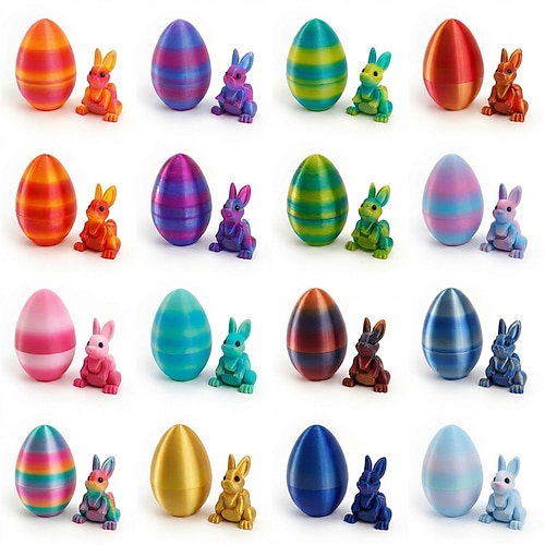 3D-gedruckte Ostereier mit beweglichem Überraschungshasen, regenbogenfarbenes Überraschungsei, beweglicher Hase als Fidget-Spielzeug, Osterkorb-Füllung für Kinder, Preise für die Ostereiersuche,