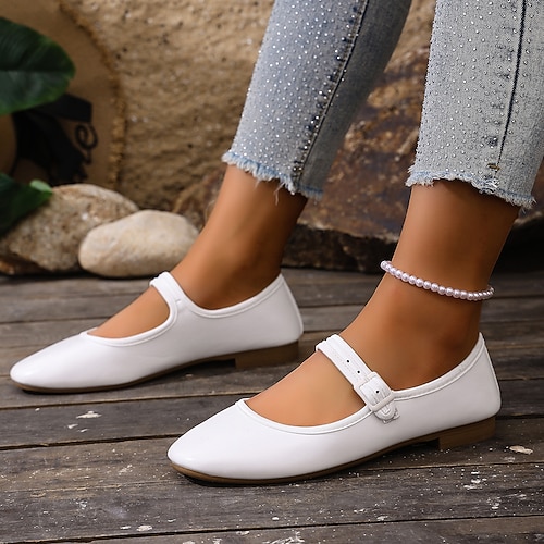 Per donna Casuale Tacco basso Punta quadrata Casual Finta Pelle Cinturino alla Caviglia Nero Bianco Rosso chiaro