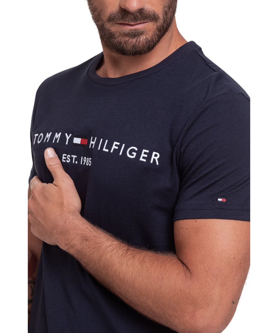 Tommy Hilfiger Mens Tee SS Core Logo Shirt Grey - Blue/navy Cotton - Size Large | Tommy Hilfiger Sale | Discount Designer Brands
