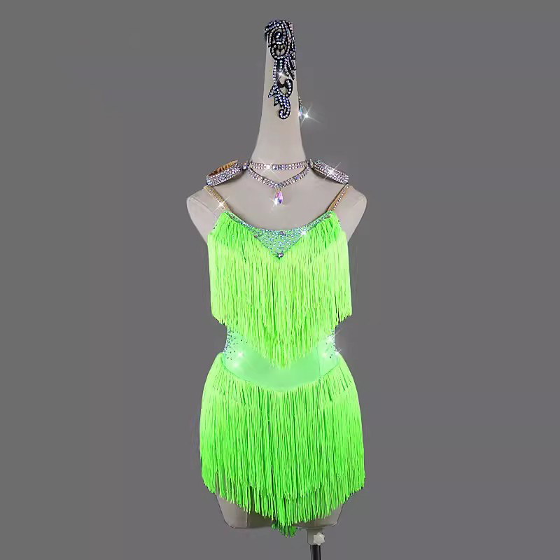 Latin Dance Dress Rhinestone Tassel Women's Performance Training Sleeveless High Spandex