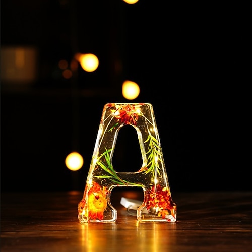 1 pz 11,5 cm 26 lettere luce notturna a led, luce calda per decorazione da tavolo a forma di fiore secco, luce ornamentale, luce decorativa per feste di compleanno, matrimonio, Halloween, Natale