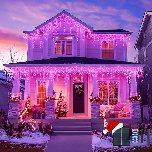 Luci a ghiacciolo solari impermeabili 10m 400 LED 48 gocce luci decorative collegabili a filo chiaro timer telecomando luci per cortile balcone albero portico