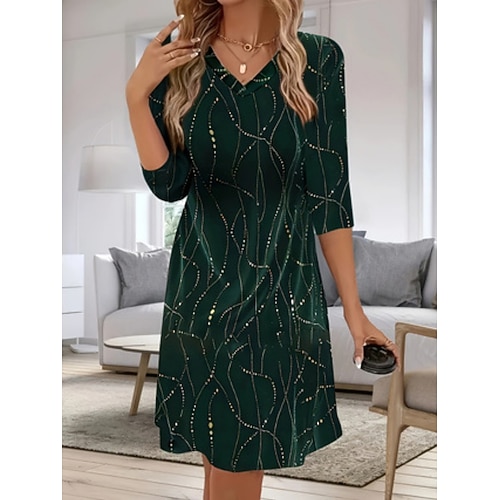 Mini Vestito per Donna Vestito A-Line Casual Quotidiano Festivo Regolare Grafica a Maniche 3/4 a V Verde Primavera Autunno Inverno