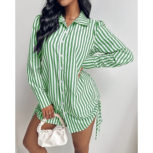 Per donna Mini Abito Abito Camicia Vestito Casual Elegante Moda Moderno Quotidiano Ufficio Ferie Vestibilità regolare A righe Manica Lunga Colletto a Camicia Nero Rosso Viola Verde Primavera Autunno