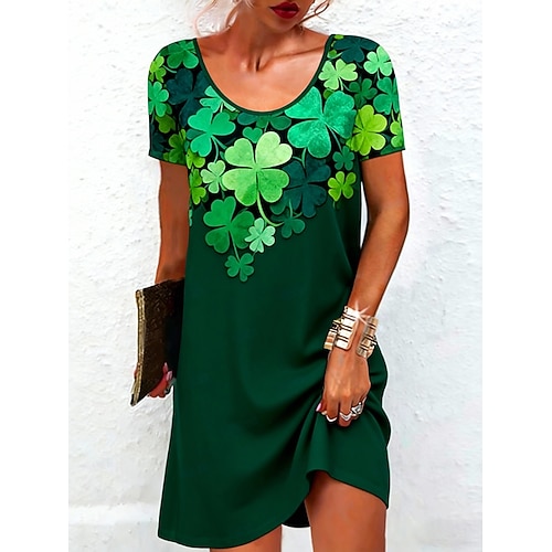 Giorno di San Patrizio Per donna Mini Abito Vestito Casual Vestito T-Shirt Moda Moderno Quotidiano All'aperto Vacanza Vestibilità regolare Grafico Trifoglio Manica Corta Girocollo Verde Estate