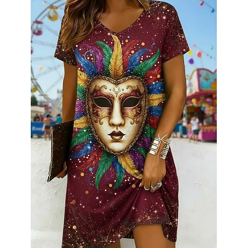 Per donna Mini Abito Vestito Casual Vestito T-Shirt Moda Moderno Quotidiano All'aperto Vacanza Vestibilità regolare Grafico Manica Corta Scollo a V Giallo Borgogna Verde scuro Viola Estate Primavera