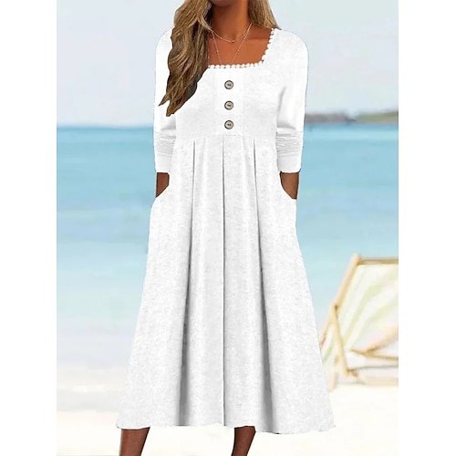Per donna Abito Midi Abito Bianco Abito da Spiaggia Vestito Casual Elegante Moda Moderno All'aperto Vacanza Uscire Vestibilità regolare Semplice Manica Lunga Collo quadrato Nero Bianco Borgogna Blu