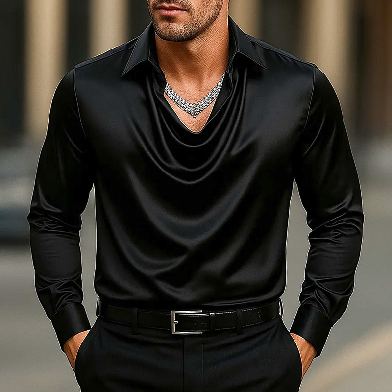 Men's Shirt Silk Like Satin Shirt Casual Shirt Plain Formal Wedding Silver Black Gold Green Long Sleeve Lapel Spring Fall All Seasons Clothing Apparel Ruched