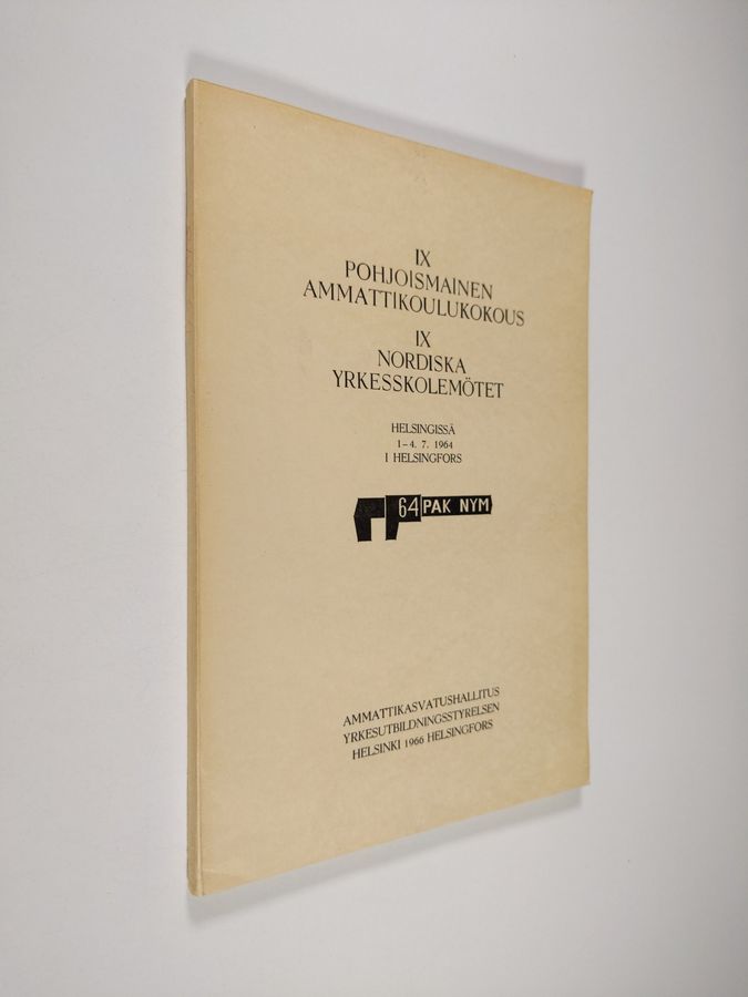 IX Pohjoismainen ammattikoulukokous Helsingissä 1-4. 7. 1964 : 64 PAK = IX Nordiska yrkesskolemötet 1-4. 7. 1964 i Helsingfors : 64 NYM