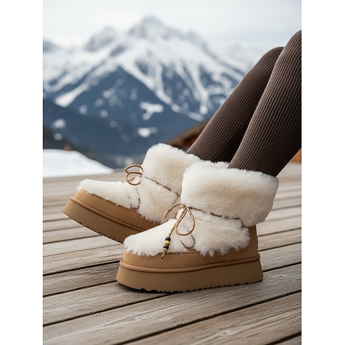 stivali invernali da donna in vera pelle: morbidi e caldi con fodera in pelliccia sintetica, comoda suola con plateau, perfetti per il freddo, le attività all'aperto e l'abbigliamento casual