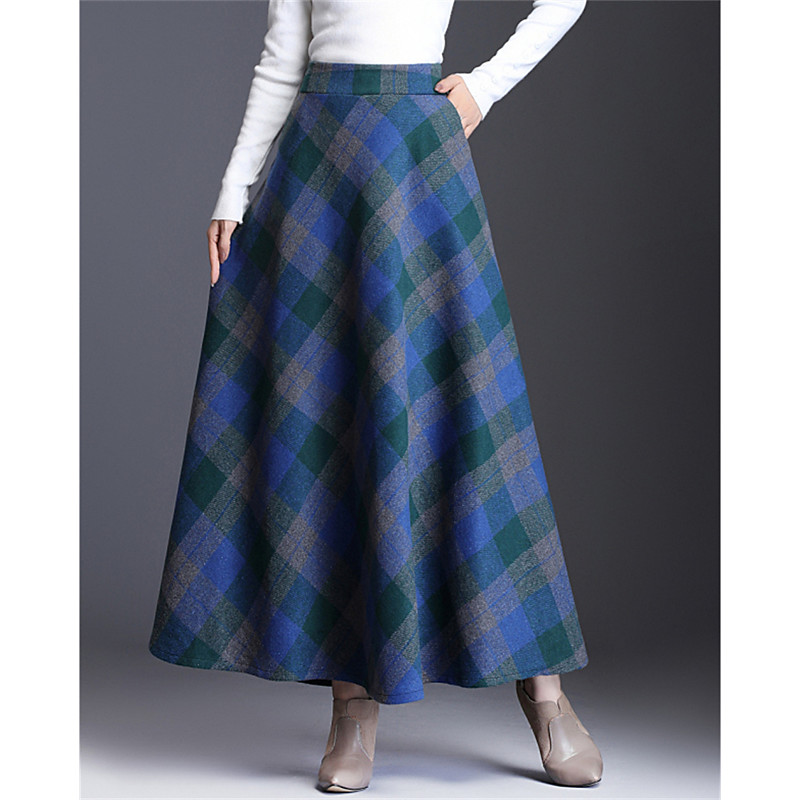 Women's Plaid Skirt Long Skirt Elegant Retro Vintage Maxi High Waist Skirts Plaid Color Block Pocket Long Micro-elastic Daily Casual Daily Apricot Red Purple Fall 100% Polyester