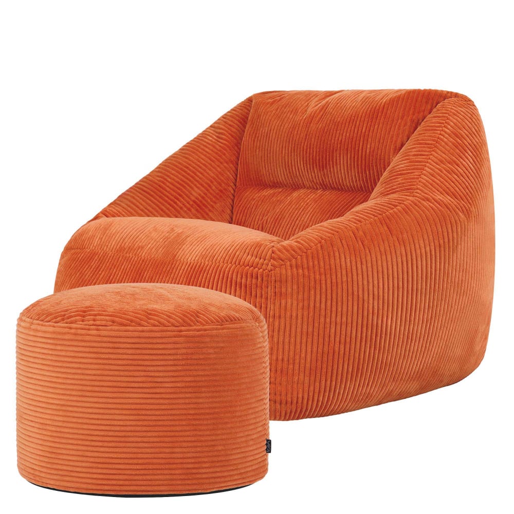 Pouf poltrona con poggiapiedi quadrato in velluto a coste grigio