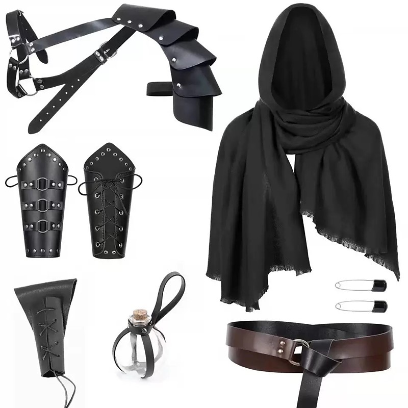 Retro Vintage Medieval Renaissance Armor Waist Belt Scabbard Pirate Viking Ranger Elven Fancy Dress Men's Women's Unisex Viking Halloween Carnival Masquerade Party LARP Adults' Belt Bag Arm Guards