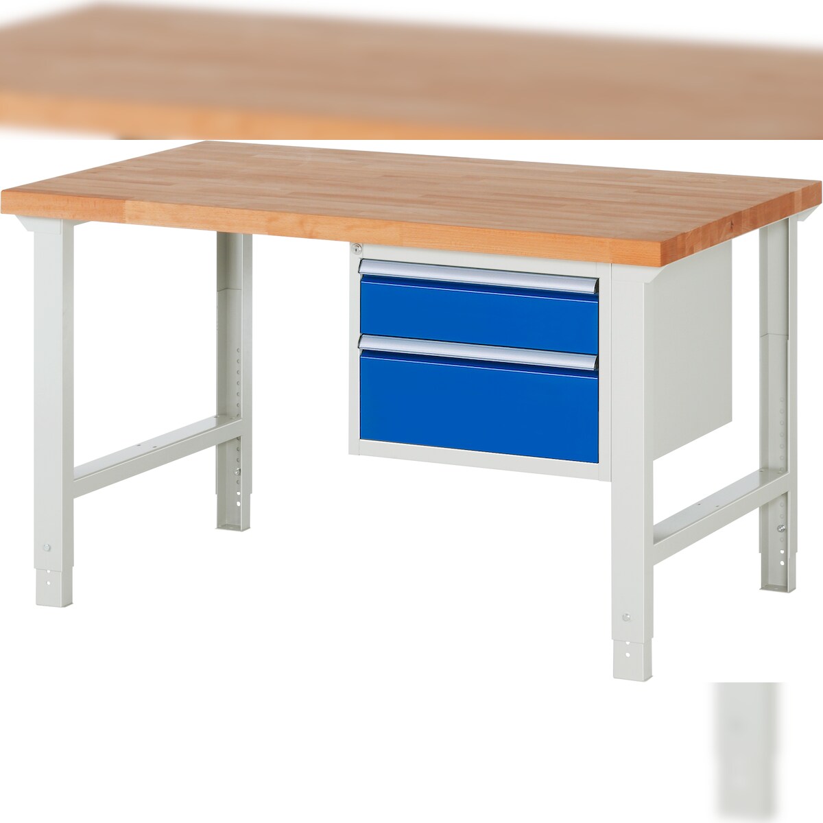 PROREGAL Werkbank Serie 7000 - Modell 7123 | HxBxT 79-114x150x90cm | 2x Schublade | Schubladenmaße 1x150 + 1x210mm