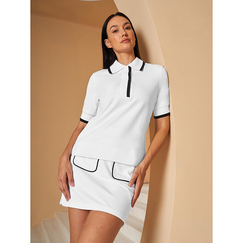 Women's Golf Polo Shirt Black White Dusty Rose Short Sleeve Shirt Ladies Golf Attire Clothes Outfits Wear Apparel
