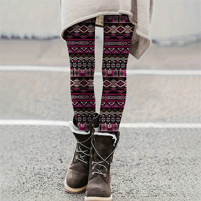 Women's Pants Trousers Leggings Cozy Leggings Casual Boho Full Length High Waist Geometic Elastic Waist Print Breathability Comfortable Stretchy Vacation Street Daily Wear Red Blue Rose Summer Spring