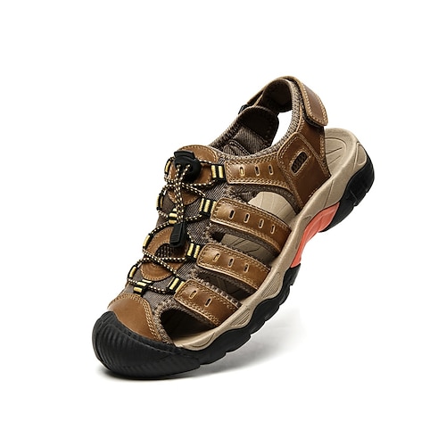 sandali da trekking da uomo in similpelle marrone – scarpe da esterno resistenti con cinturini regolabili per le avventure estive