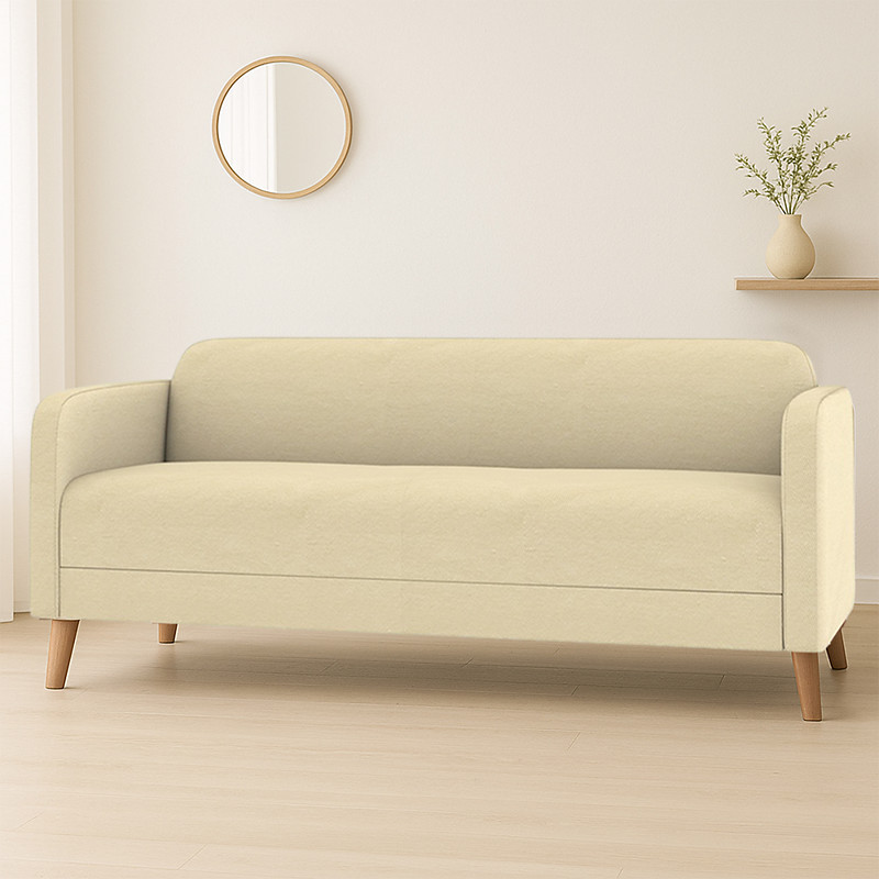 Aosom 3-Personers Sofa Med Tykke Hynder, Gummitræ, Stofbetræk, Polstret Sofa Til Stue, Kontor, Soveværelse, Cremehvid