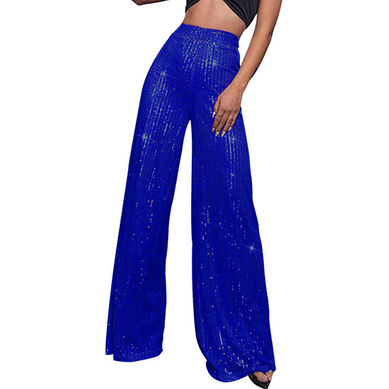 Women's Wide Leg Pants Trousers Sparkly Pants Elegant Fashion Sparkle Full Length High Waist Plain Sequins Comfy Micro-elastic Party Street Party Evening claret M beige Pink gold Black Summer Spring