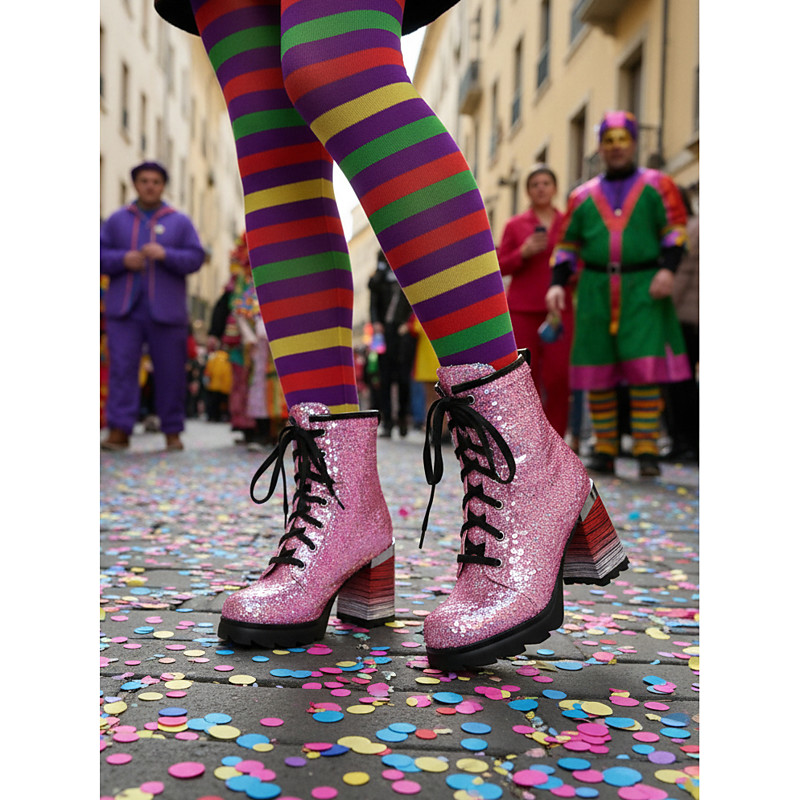 Women's Mardi Gras Sparkling Sequin Boots with Block Heel, Fashionable Starry Design, Comfortable Fit, Ideal for Carnival or Party Wear