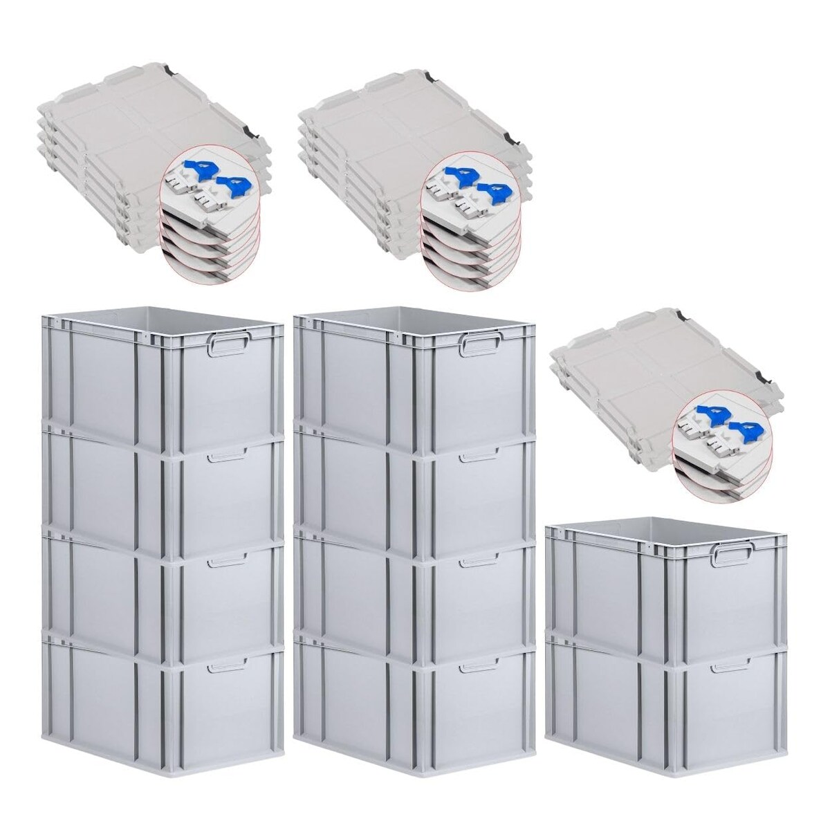 PROREGAL SuperSparSet 10x Eurobox NextGen Economy mit Scharnierdeckel & blauen Verschlüssen, Griffe zu, HxBxT 32x40x60cm, 65L, Eurobehälter, Box