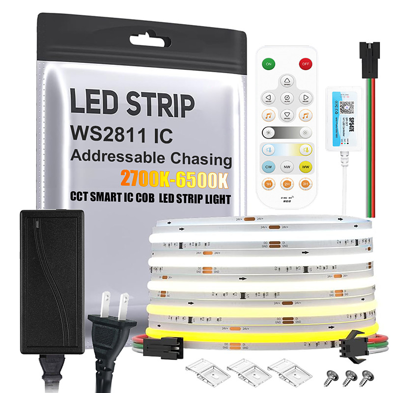 COB LED Strip Lights Addressable 2700K-6500K Chasing White Light CCT Dual-mod Smart IC Tunable Tape Light 16.4ft Super Bright DimmableAlexa Voice Controlfor Under Cabinet Bedroom Kitchen DIY Lighting