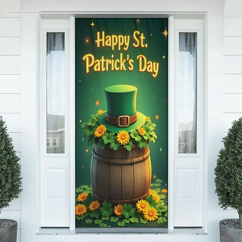 St. Patrick's Day Posters Door Cover Outdoor Banners Green Hat Shamrock Cute Bohemian 3D Party Dorm Teens Room College Dorm Guys Man Cave Frat Bedroom Shooting Backgrounds Home Decor