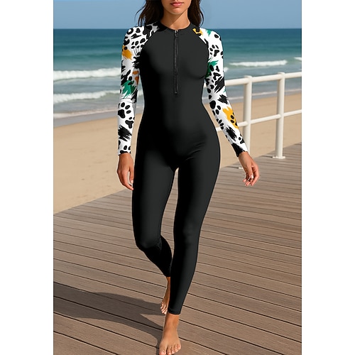 Per donna Top sottomuta Costumi da bagno interi Muta da sub Floreale UPF50 Asciugatura Rapida Alta elasticità Manica Lunga Costume da Bagno Surf Immersione Snorkeling Estate