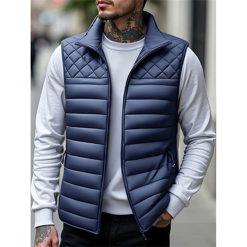 Men's Puffer Vest Vest Gilet Vacation Daily Date Fashion Casual Fall Winter Pocket Polyester Warm Comfortable Solid Color Zipper Stand Collar Regular Fit Blue Black Gray Vest