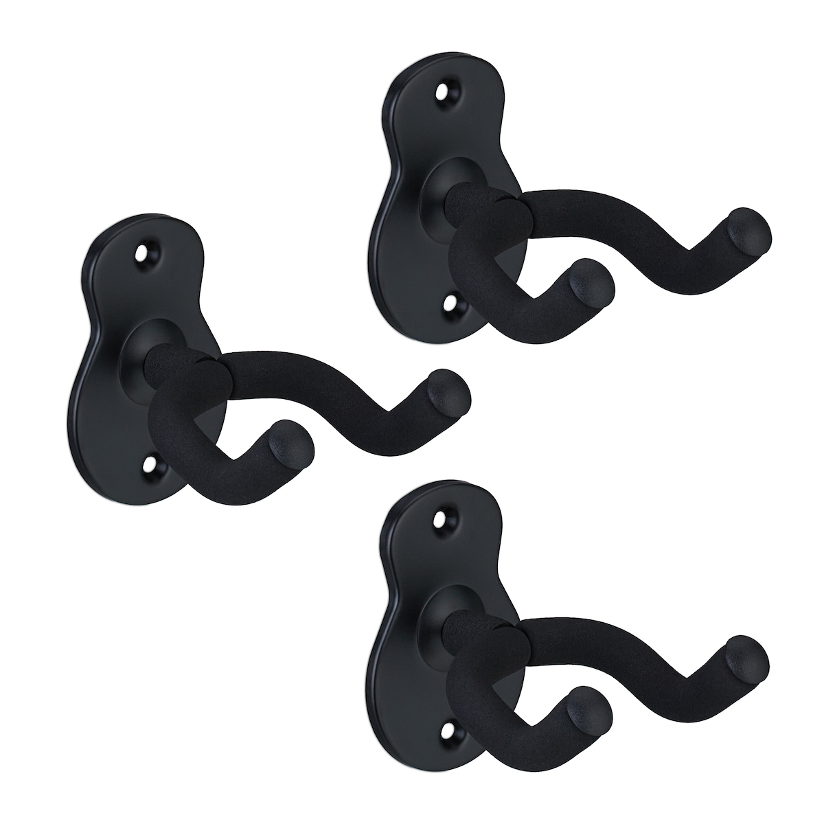 Relaxdays Gitarrenhalter für die Wand, 3er Set, drehbare Gabel, Metall, Gummipolsterung, Gitarrenwandhalter, schwarz