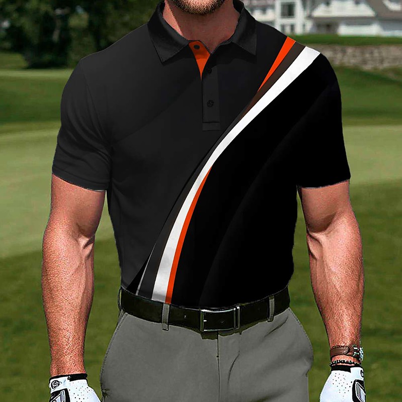 Men's Golf Line Sports Polo Shirts Short Sleeve Polo Shirts Lapel Casual Athleisure 3D Print Buttons Summer Blue Yellow Red