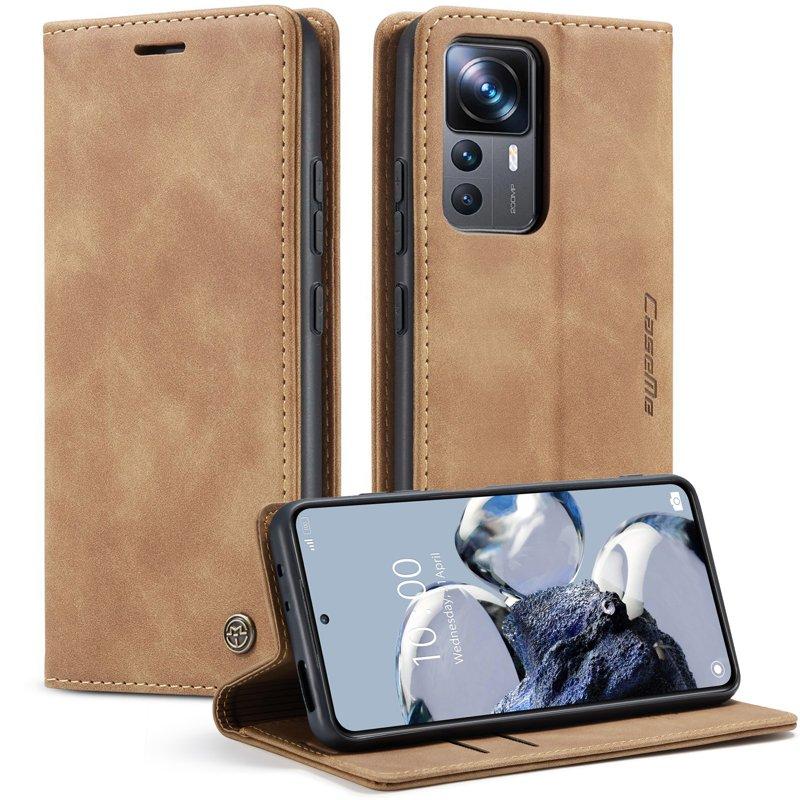 CASEME 013 Series Xiaomi 12T Pro 5G Plånboksfodral Konstläder Brun