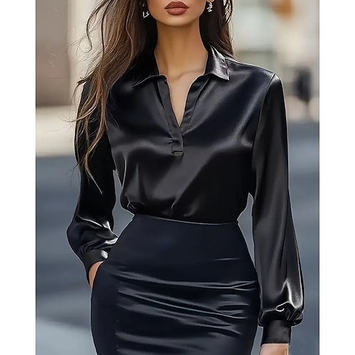 Per donna Camicia Camicie ispirate al lino Abbottonare Blusa Semplice Elegante Affari Essenziale Manica Lunga Colletto a Camicia Top Regolari Lavoro Quotidiano Weekend Nero Bianco Grigio Autunno