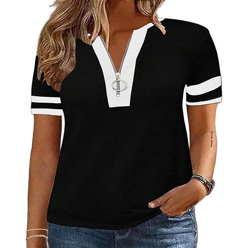 Per donna Felpa Pullover Felpe con cappuccio Grafico Semplice Elegante Moda Carino Manica Corta Scollo a V Top Regolari Casa Lavoro Streetwear Patchwork Stampato Zip a un quarto Nero Bianco Grigio