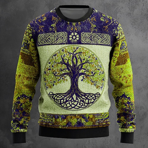 Per uomo Vichingo Albero della vita Maglione Maglieria Girocollo Retrò Vintage Casual Vacanza Quotidiano Stampa 3D Lavoro a maglia Tenere al caldo Manica Lunga Primavera Autunno Inverno Rosso Blu