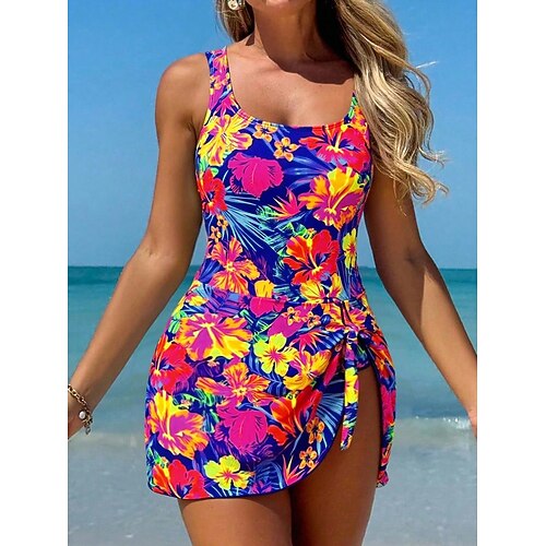Costume da bagno intero da donna con gonna Monokini con taglio alto controllo della pancia vita alta slim schiena scoperta estate vintage grafica floreale scollo a U senza maniche