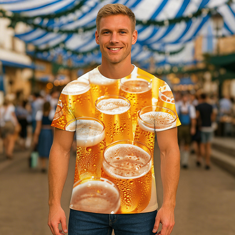Bavarian Munich T-shirt Sleeve T-shirt Bavarian Beer Graphic for Men's Adults' 3D Print for Oktoberfest Beer Casual Daily