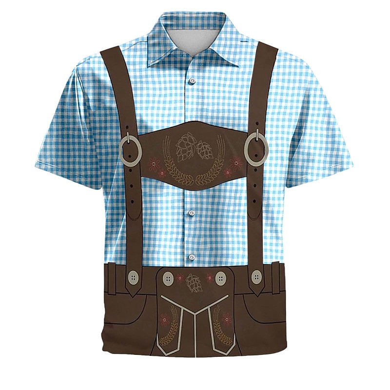 Oktoberfest Shirt for Lederhosen Matching Bavarian German Alpine Wiesn Men's Carnival Party Beer Festival Traditional Style Cloth