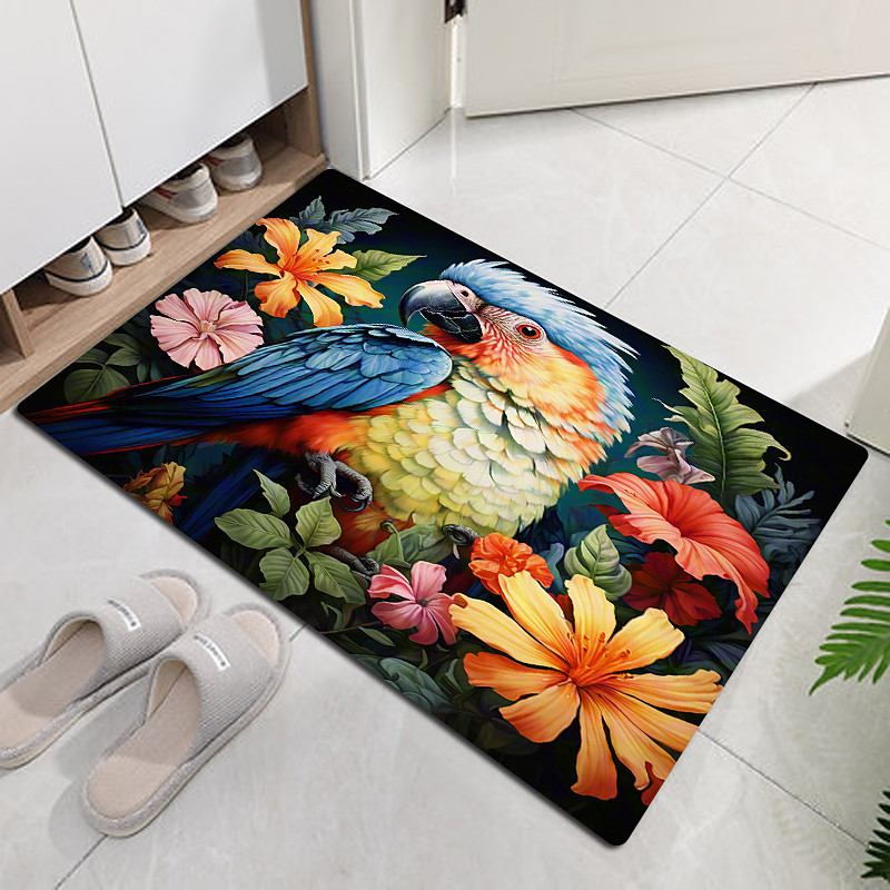 Nordic Style Flannel Flower and Bird Pattern Non-Slip Floor Mat Dustproof Carpet for Bedroom Bathroom Kitchen Foyer Entrance Living Room Home Decor