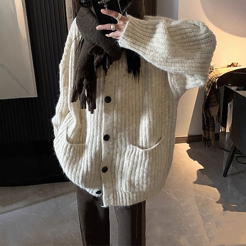 Per donna Cardigan Moda Morbido Tinta unica A Coste Scollo a V Tasca Bottoni Lavorato a maglia Manica Lunga Top Regolari Maglia Quotidiano Ferie Uscire Nero Bianco Autunno