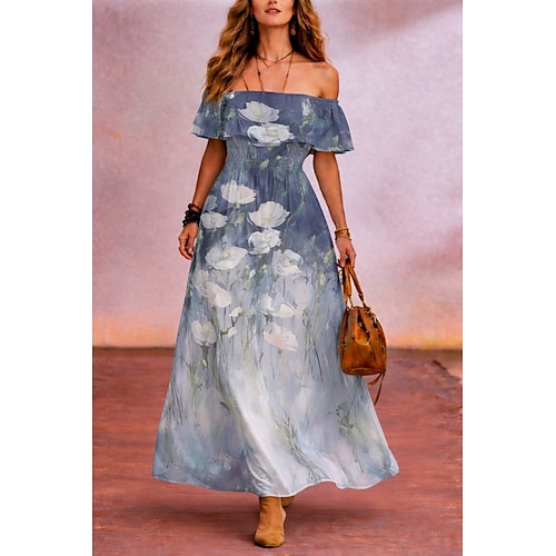 abito lungo in chiffon da donna prendisole abito a tubino abito a trapezio abito svasato festa in vacanza festa in spiaggia matrimonio vestibilità regolare floreale grafica senza maniche spalle